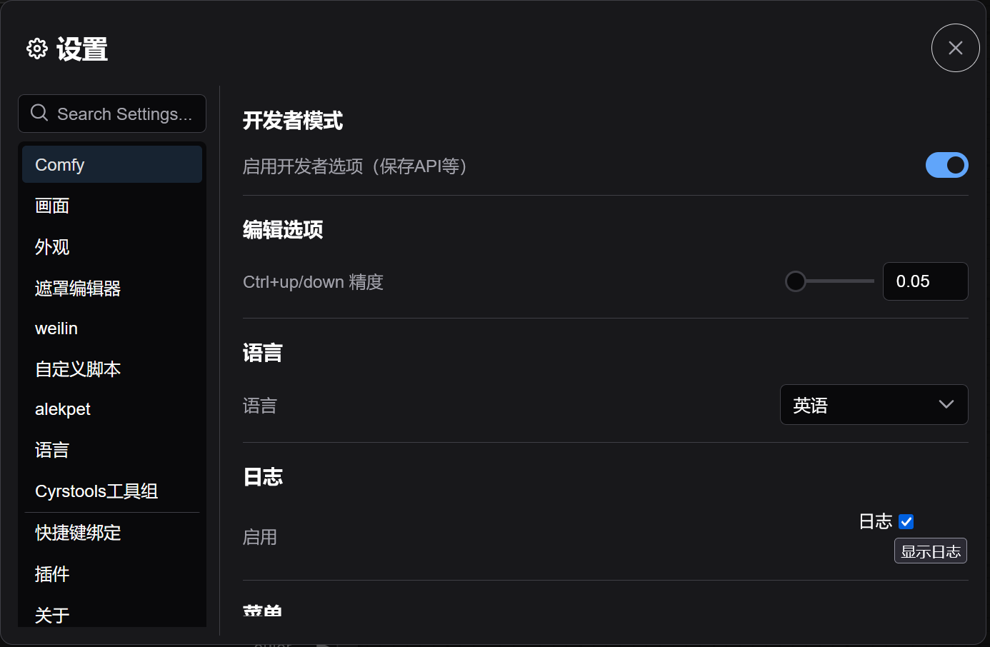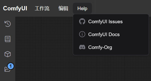 | 作用 | 显示关于工作流的操作。 | 显示编辑工作流的功能。 | 获取 ComfyUI 帮助。 | 显示 ComfyUI 运行日志。 | 隐藏 / 显示 ComfyUI 工具栏。 |