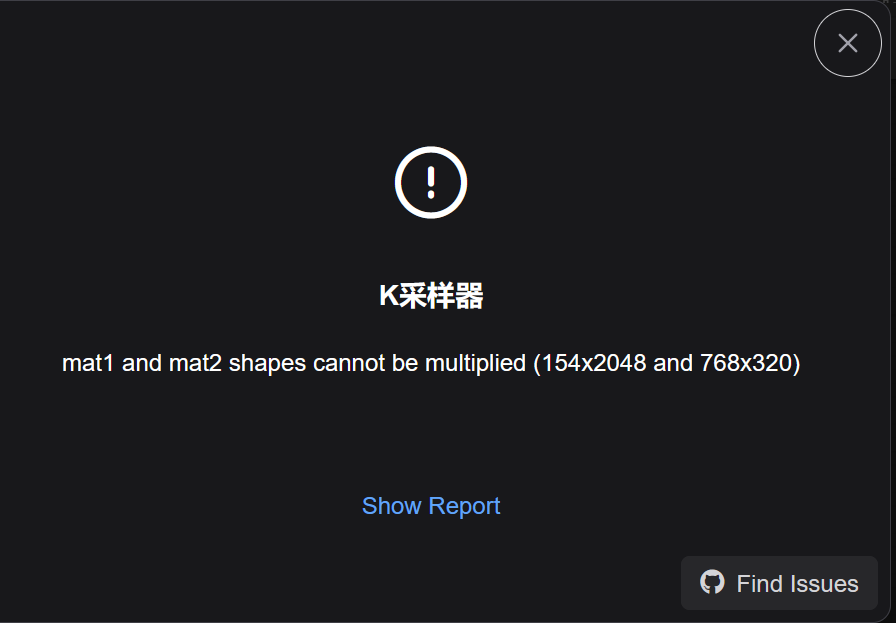 点击 Find Issues 可以跳转到 ComfyUI 的 Github Issues 分区中,可以尝试从中找到和自己错误类似的帖子并寻求解决方法,或者发送 Issues 报告这个错误。